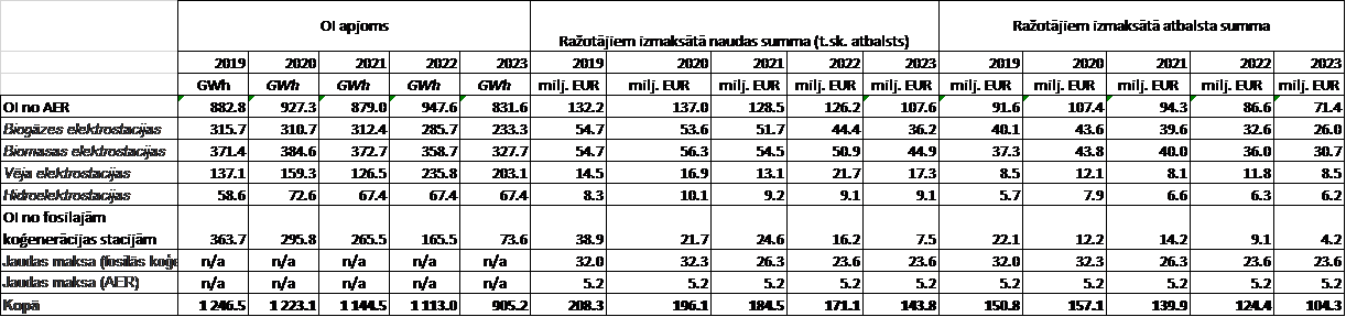Kā zināms, lai veicinātu elektroenerģijas ražošanu no atjaunojamiem energoresursiem un augstas efektivitātes koģenerācijā, Latvijā kā atbalsta instruments tiek izmantots elektroenerģijas OI un jaudas maksa par elektrostacijā uzstādīto elektrisko jaudu.